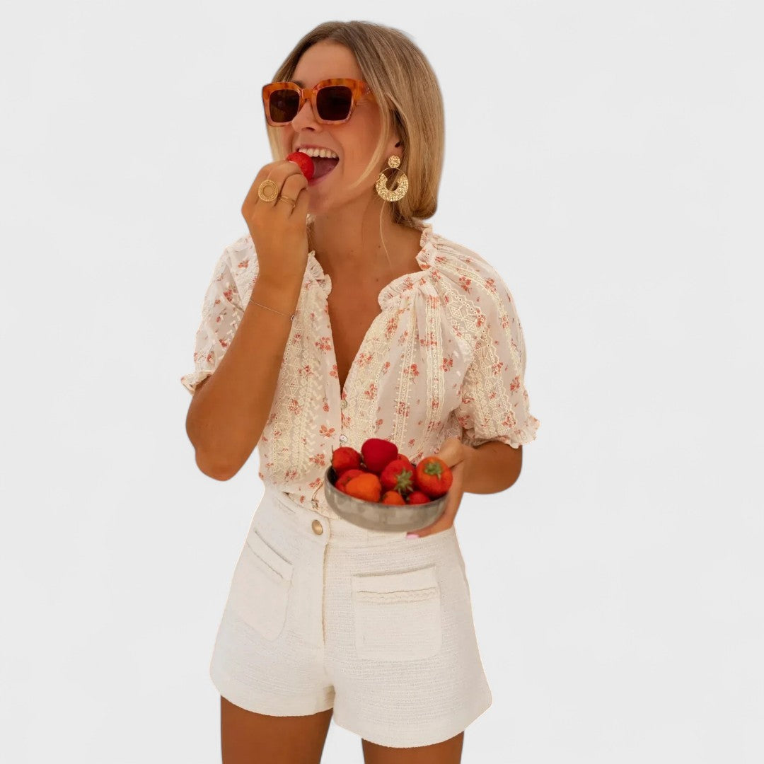 • Delikatny kwiatowy nadruk – Wprowadza letni nastrój i podkreśla kobiecą energię bez przesadnej wyrazistości