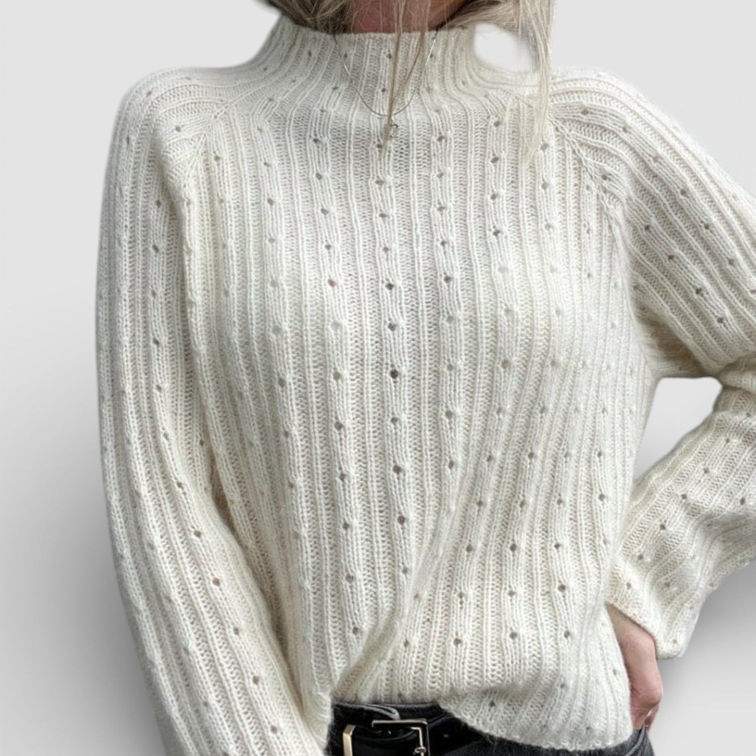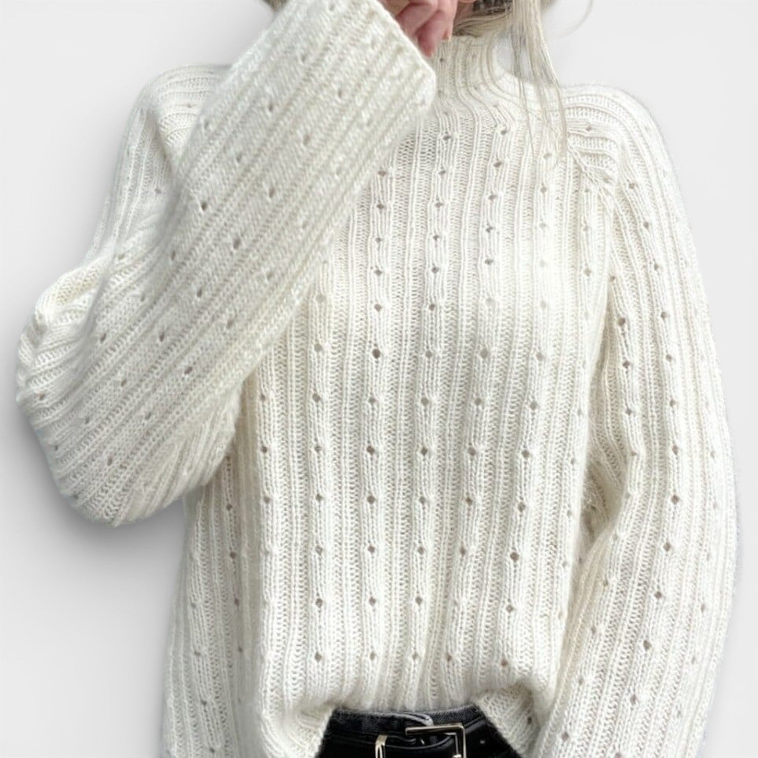 Lilianna – Prążkowany sweter z półgolfem i ażurową strukturą