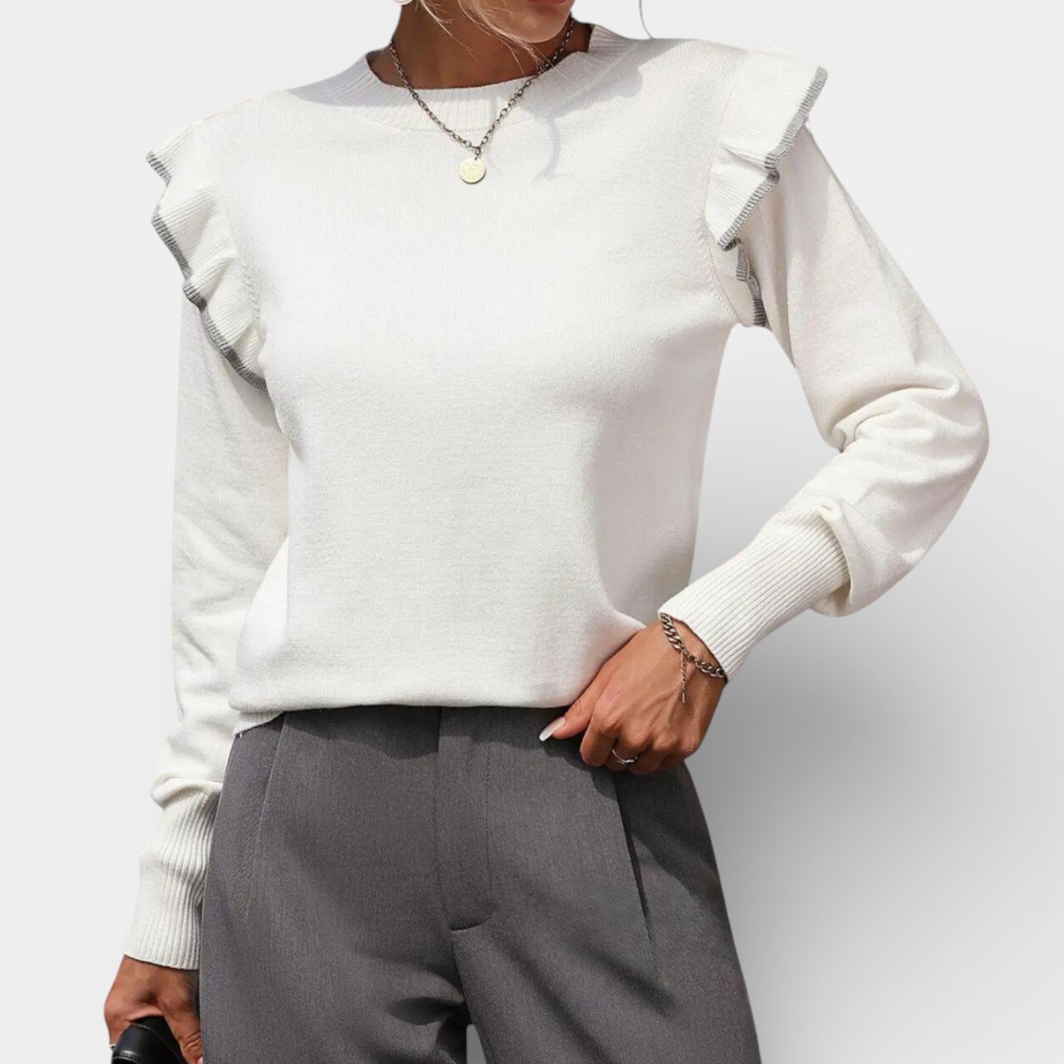 Łucja – Elegancki sweter z falbanami