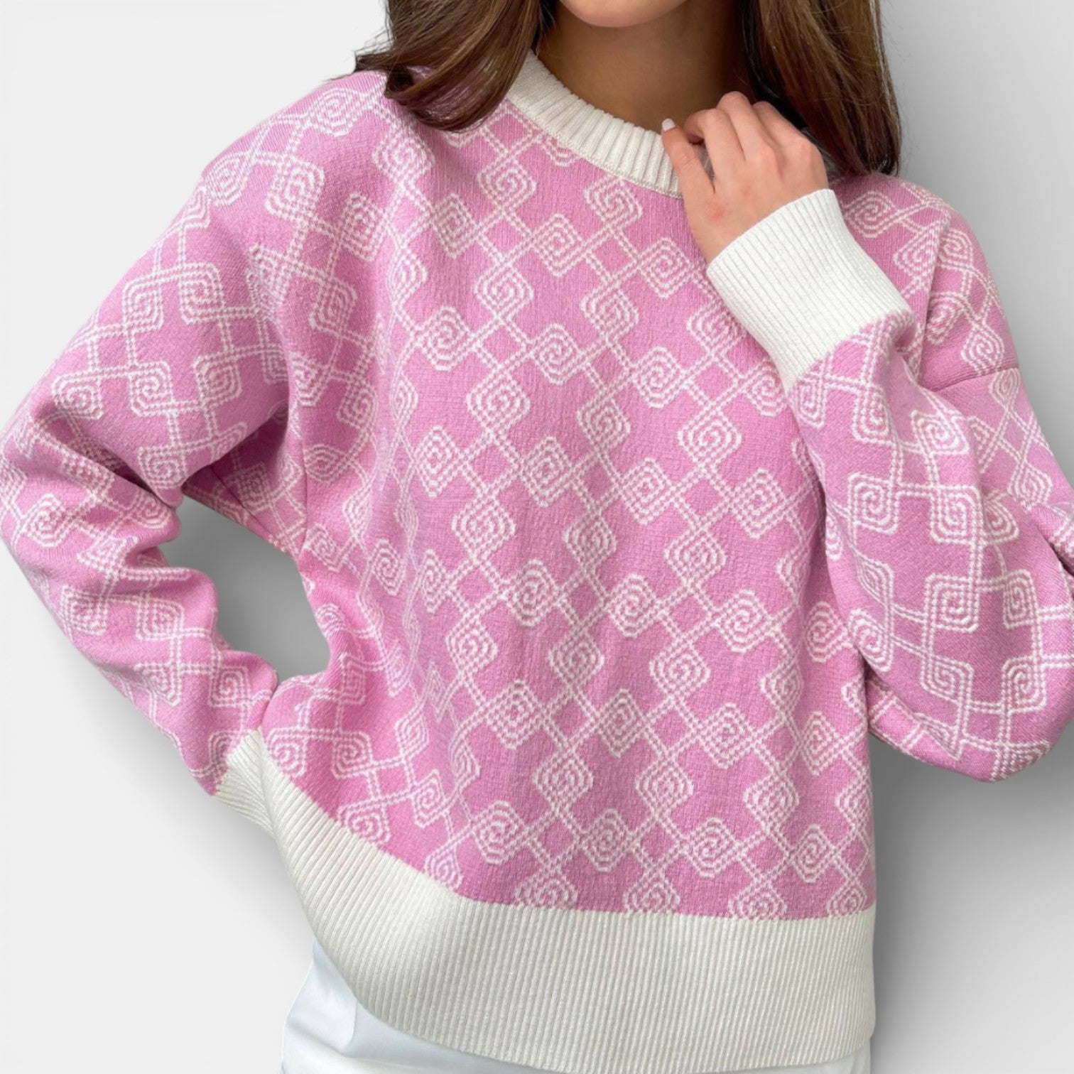Milena – Dzianinowy sweter żakardowy z geometrycznym wzorema