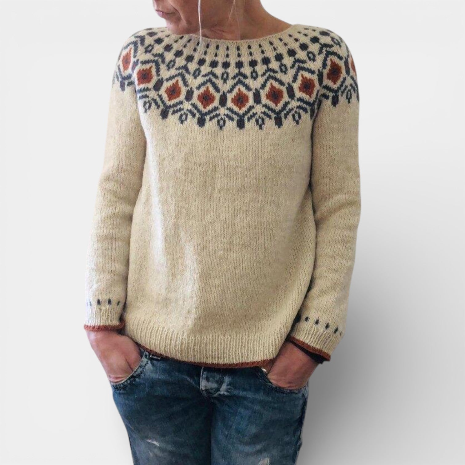 Natalia – Dzianinowy sweter z norweskim wzorem