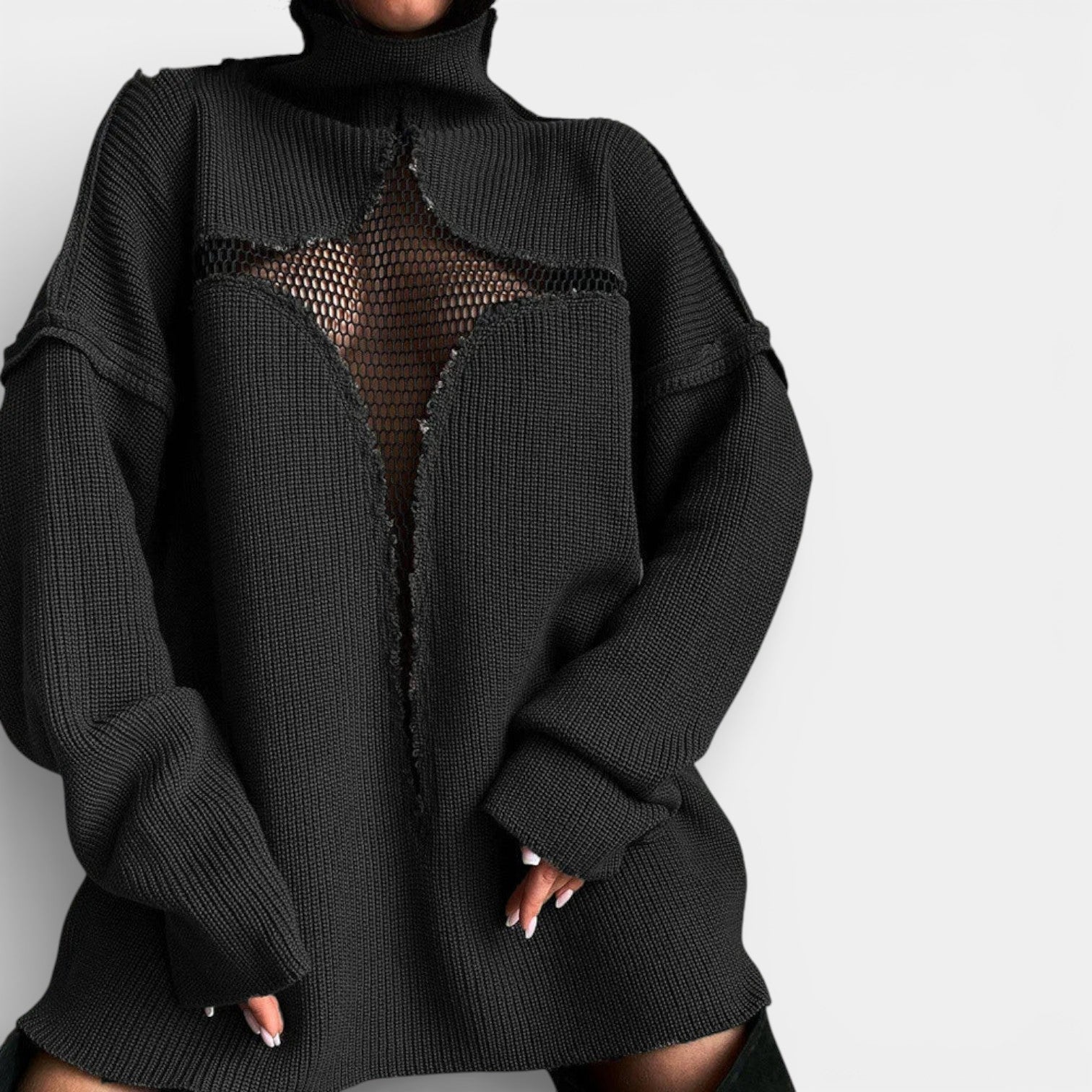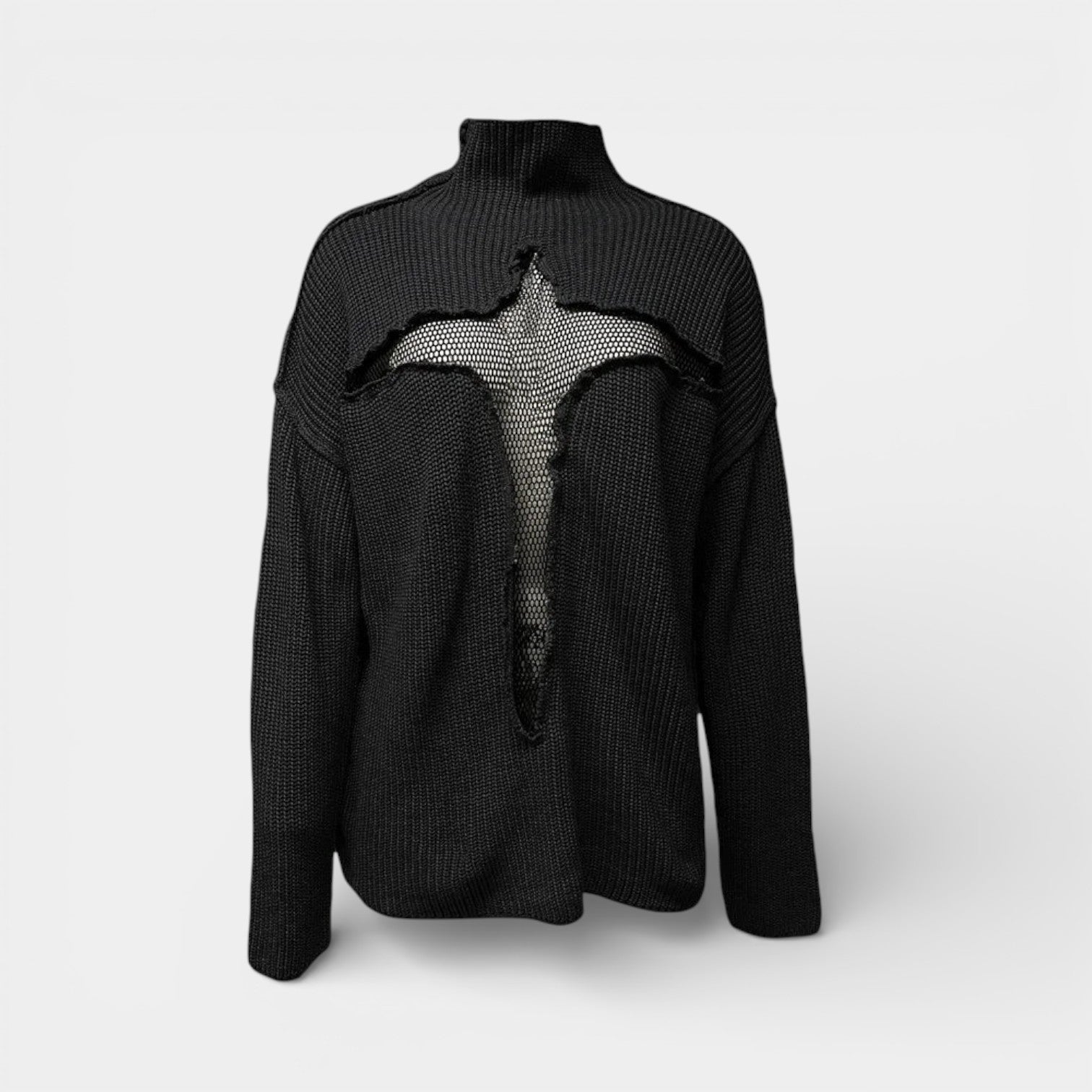 Zuzanna – Sweter z wycięciem i siateczkowym panelem