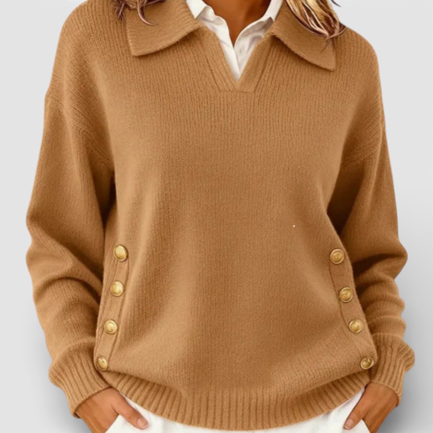 Ilona – Elegancki sweter z dzianiny z detalami guzików