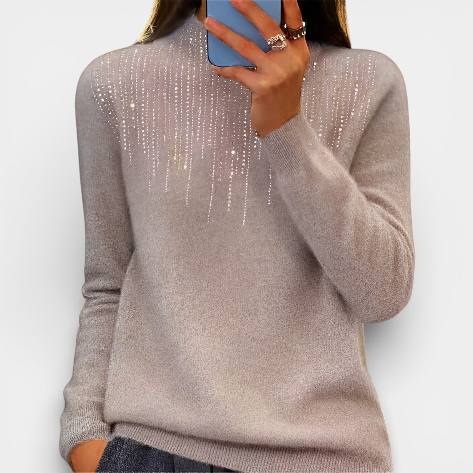 Jolanta – Sweter damski z półgolfem i subtelnym połyskiem