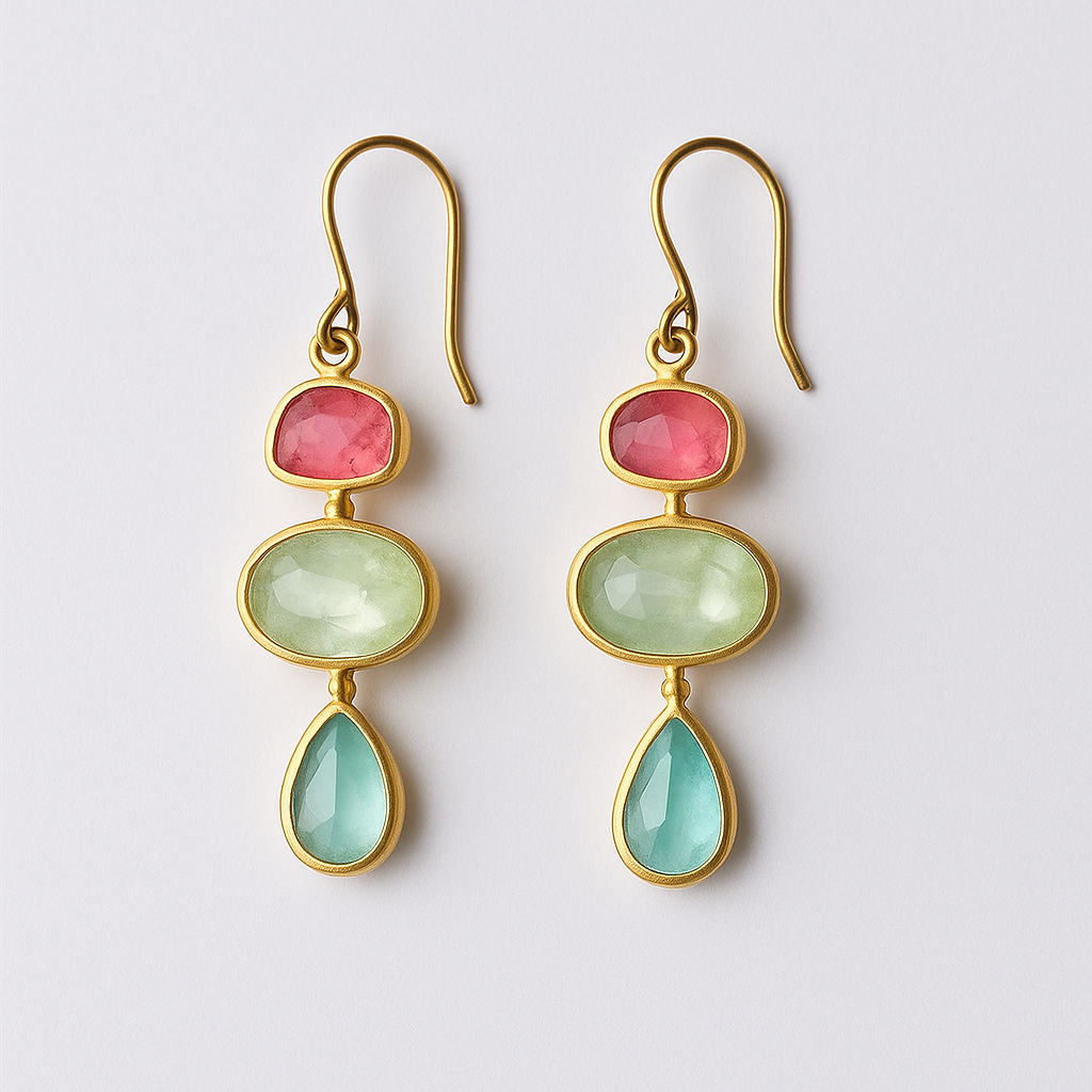 Doświadcz czystej energii kolczyków "Uffe", inspirowanych wolnością i pięknem życia. Z trzema żywymi kolorami — czerwonym, zielonym i niebieskim — tworzą doskonałą równowagę, która harmonizuje jak nuty w wesołej melodii.