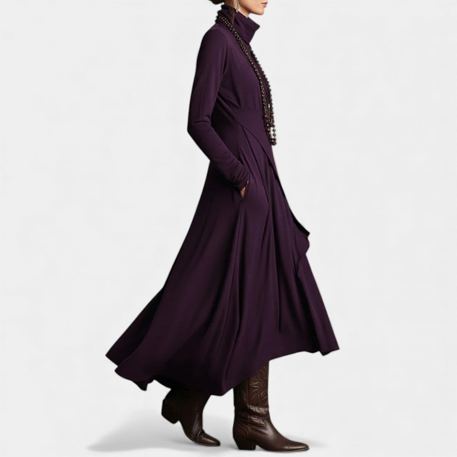 Płynna długość maxi – Dramatycznie opadający brzeg do ziemi zapewnia luksus i ponadczasową elegancję.