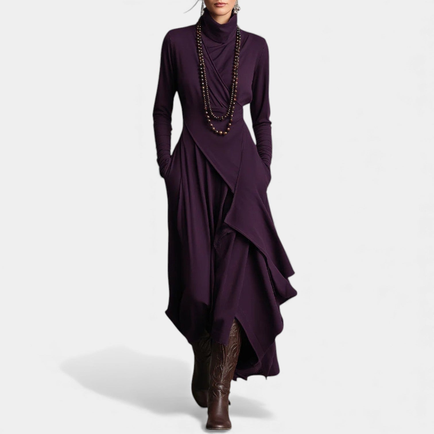 Julija – Asymetryczna sukienka maxi z drapowanymi detalami