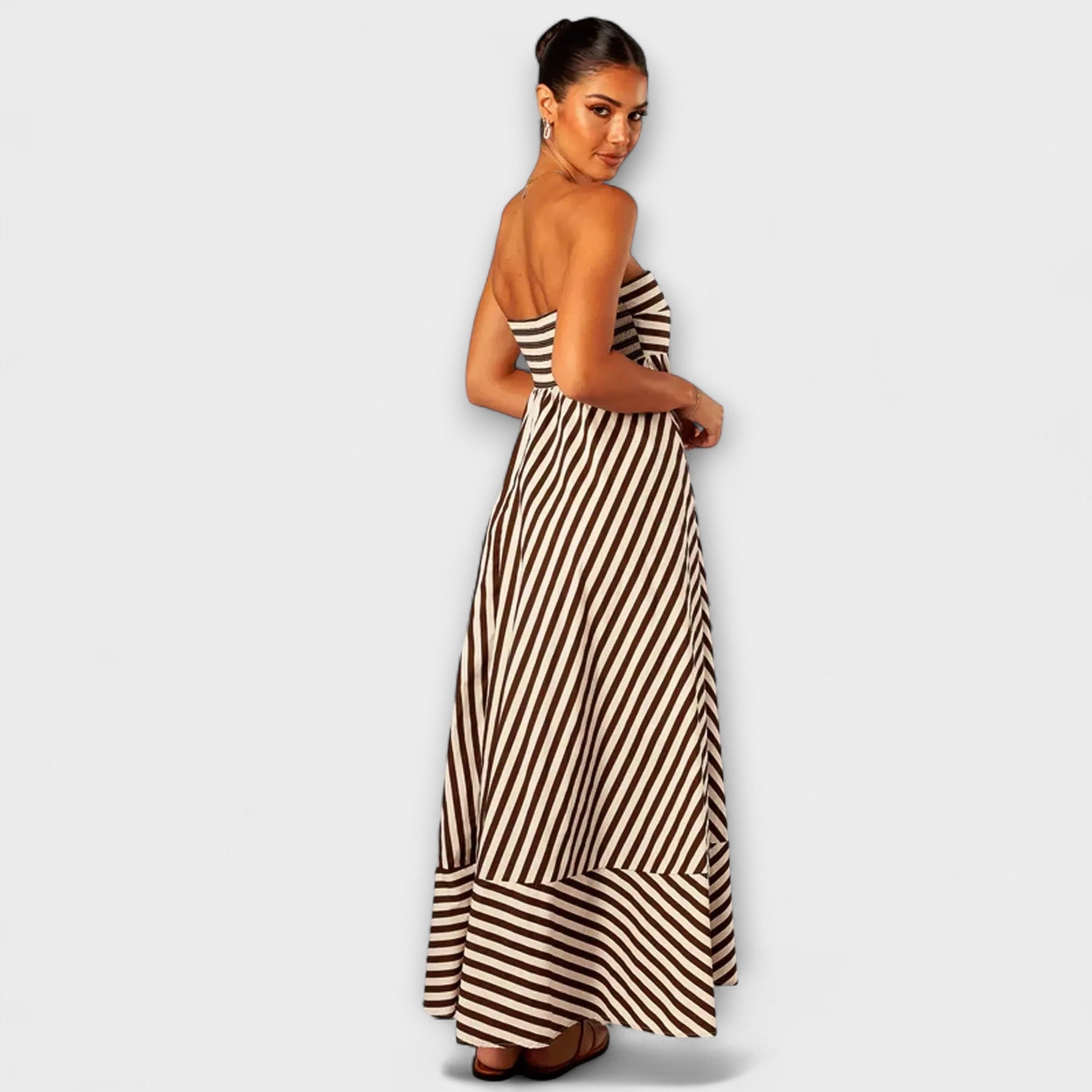 Przyjmij elegancję i ruch z maxi sukienką Nocturnal Charm z falbanami. Zaprojektowana z myślą o komforcie i stylu, detal z falbanami na plecach podkreśla Twój wygląd, podczas gdy boczny niewidoczny zamek zapewnia bezpieczne noszenie.