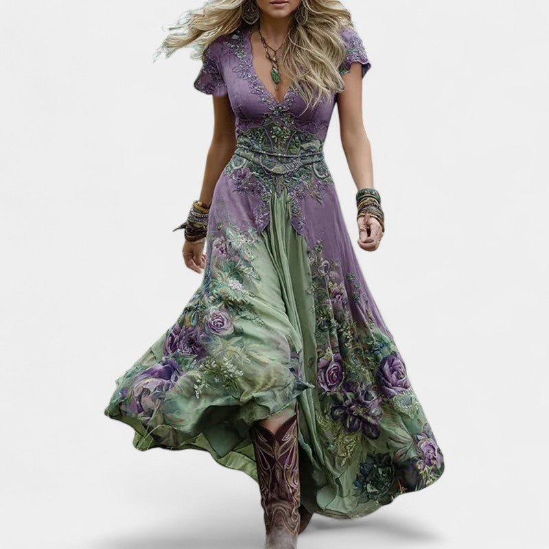 Sukienka Celestine łączy naturalną elegancję z beztroskim urokiem. Lekka, zwiewna tkanina, delikatne haftowane detale i dopasowany gorset tworzą sylwetkę, która porusza się z gracją i pewnością siebie. To idealny wybór na przyjęcia na świeżym powietrzu, spacery w przyrodzie lub romantyczne chwile pod gołym niebem.