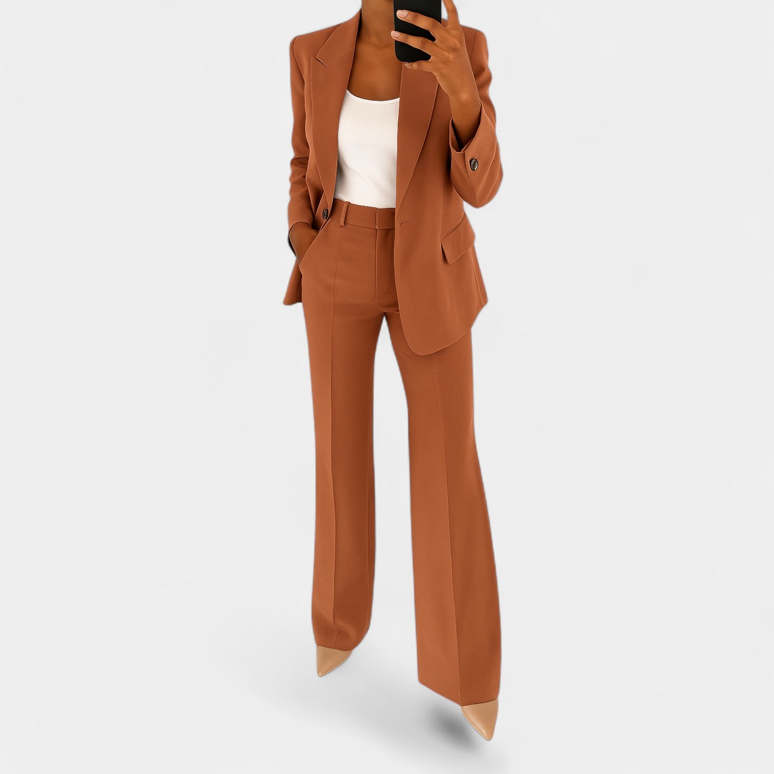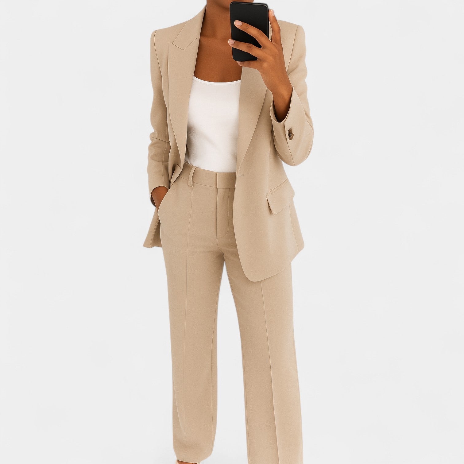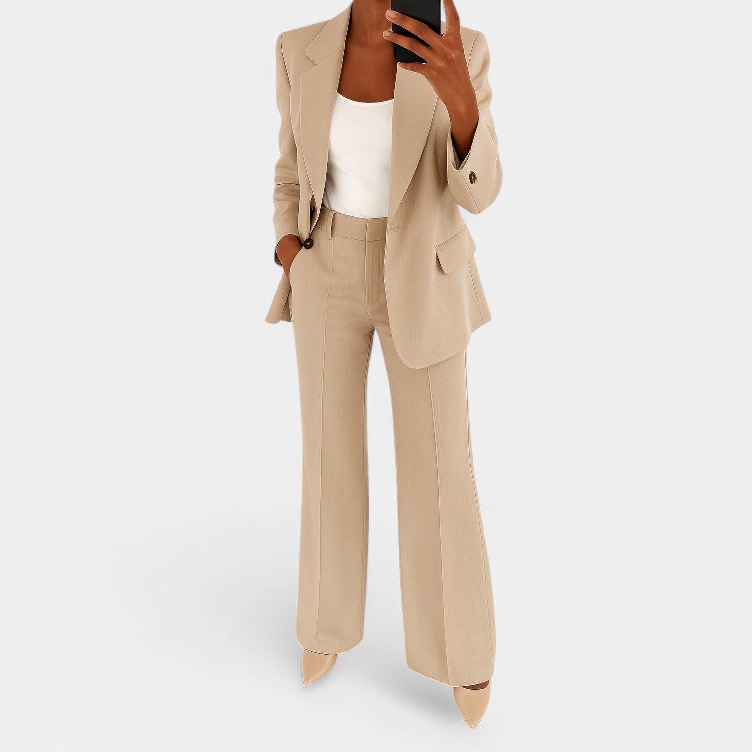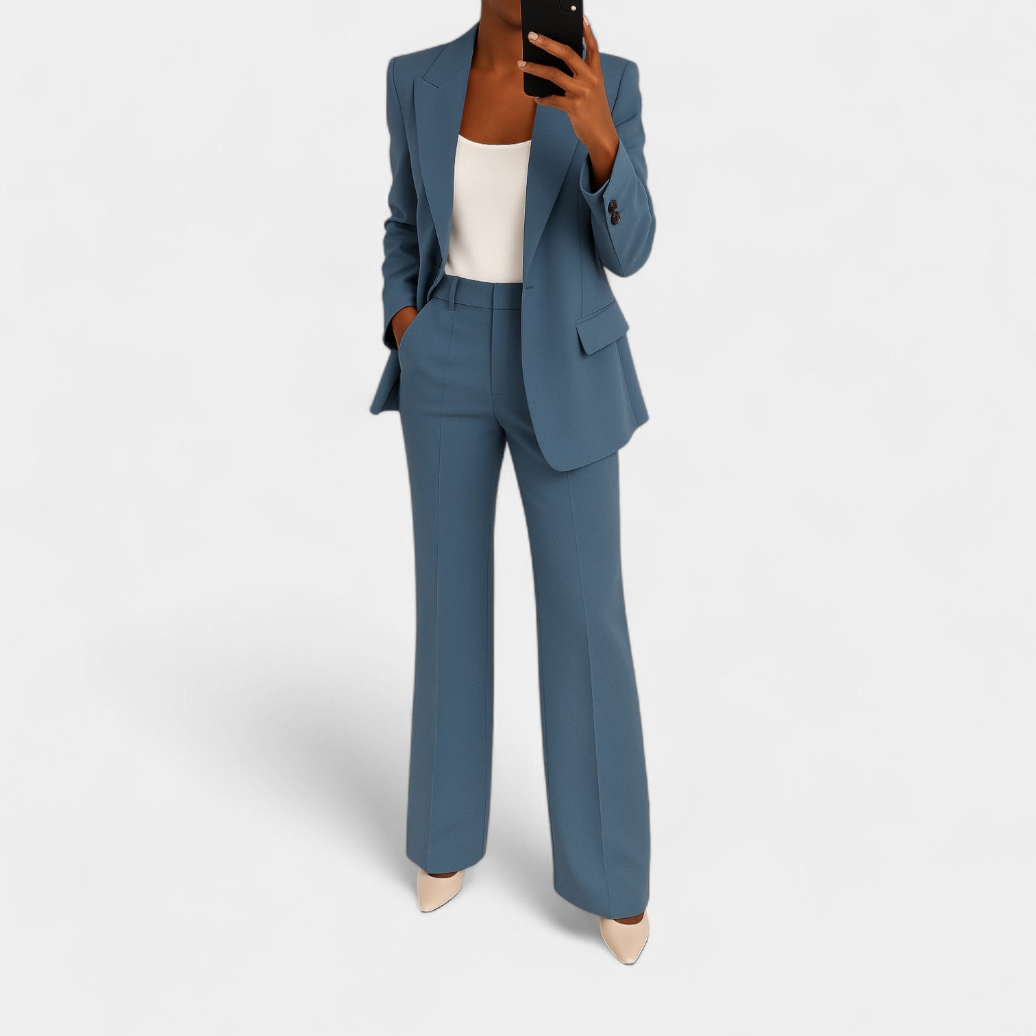 Kostium Markéta łączy elegancję, strukturę i nowoczesny minimalizm w jednym. Połączenie marynarki i spodni z czystymi liniami i korzystnym krojem czyni go idealnym wyborem na spotkania biznesowe, do biura oraz na wieczorne okazje, kiedy chcesz wyglądać pewnie i stylowo.